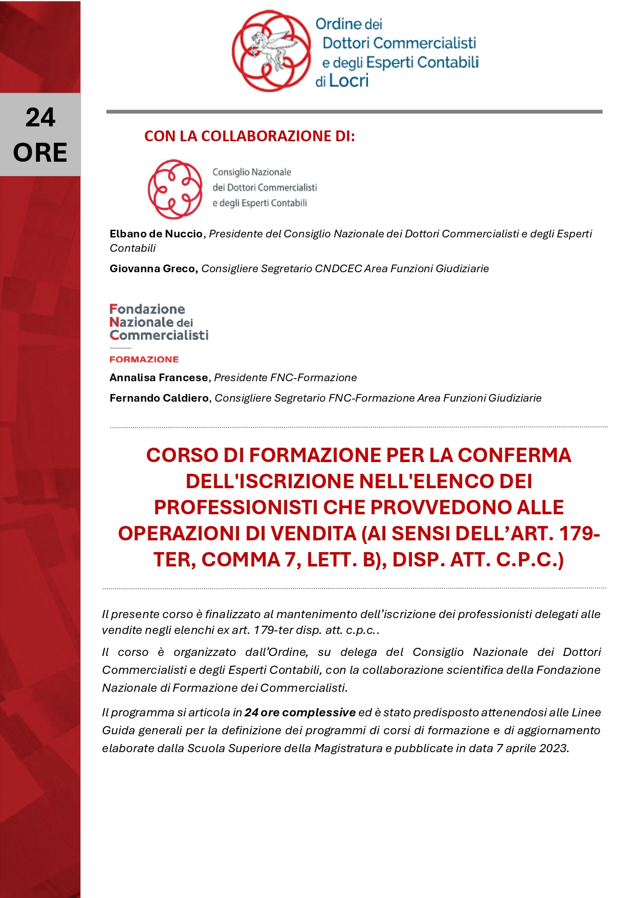 anche quest’anno, il nostro Ordine terrà il Corso EE.LL. la cui partecipazione maturerà n. 10 CFP validi sia ai fini dell’adempimento dell’obbligo della Formazione Professionale Continua, sia ai fini dell’inclusione nell’Elenco dei Revisori degli Enti Locali.