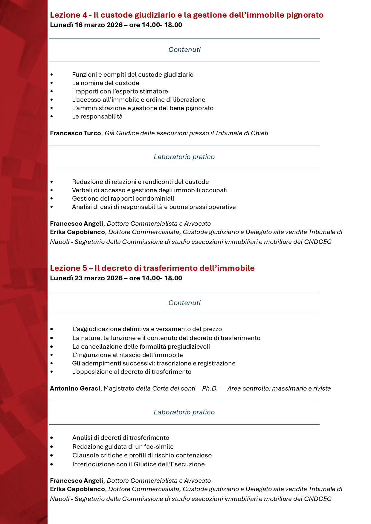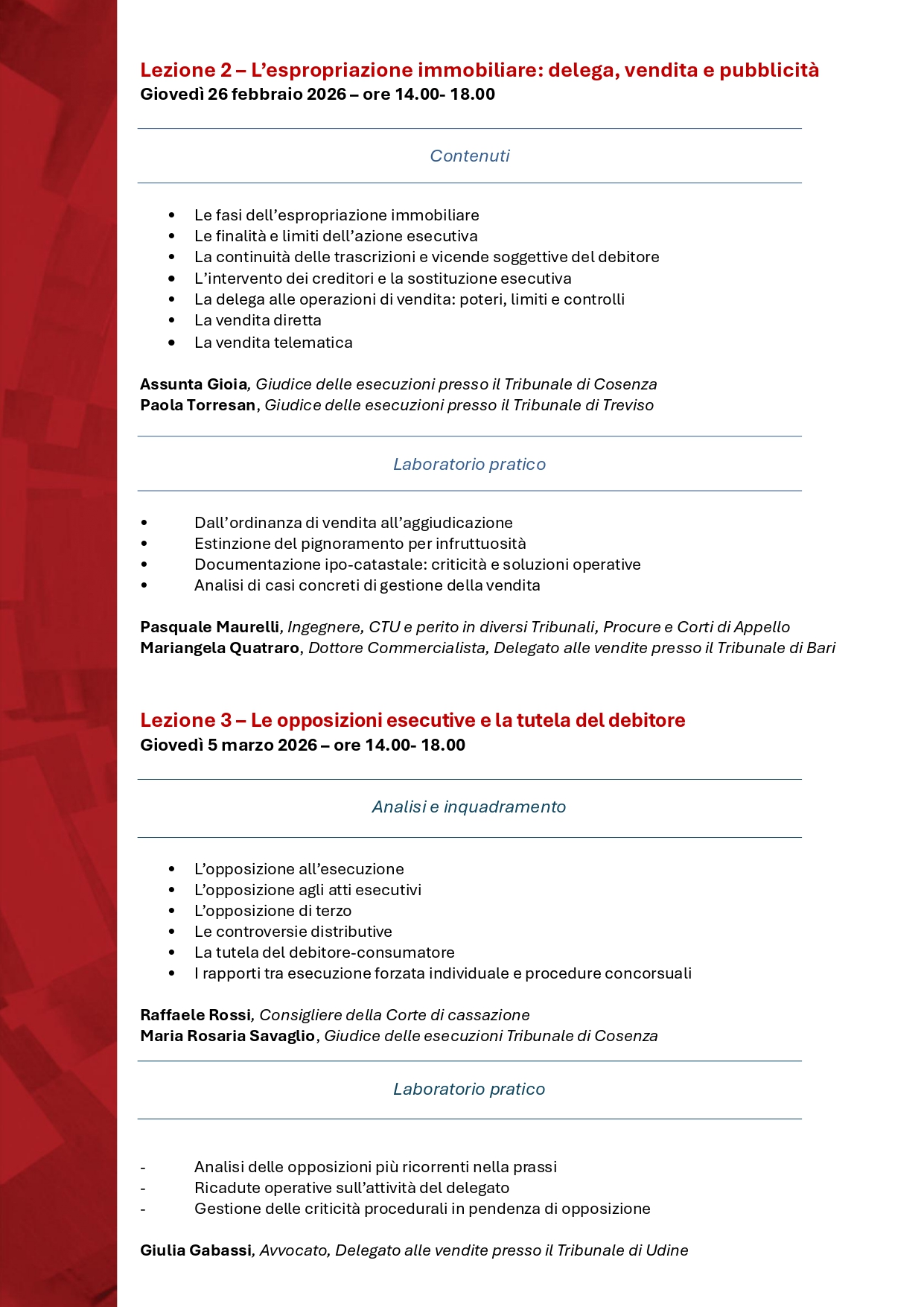 Per partecipare al corso si prega di voler inviare, entro e non oltre il 12 febbraio 2026, la propria adesione tramite mail all’indirizzo