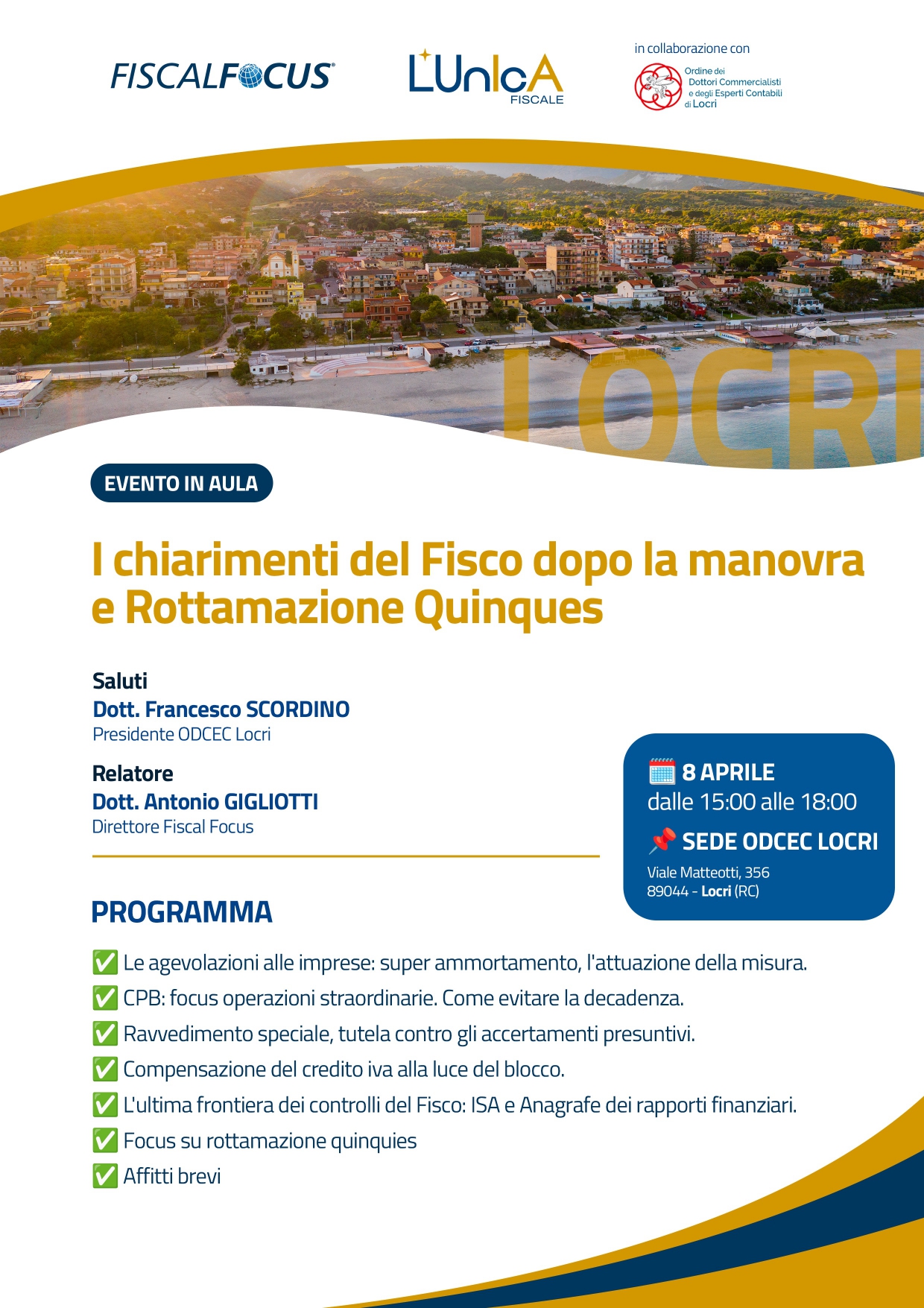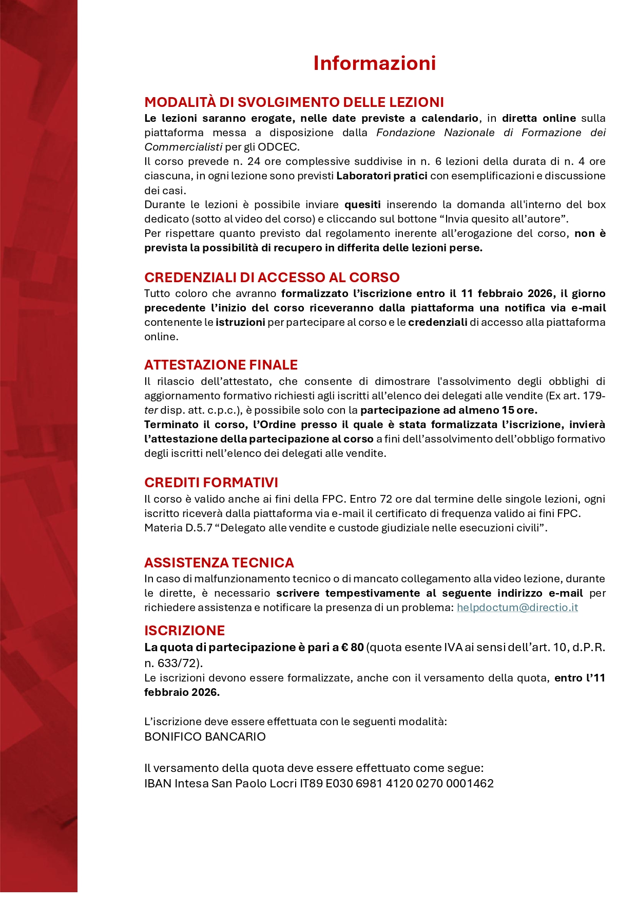 • € 40,00 per gli Iscritti all’Ordine dei Dottori Commercialisti ed Esperti Contabili di Locri;