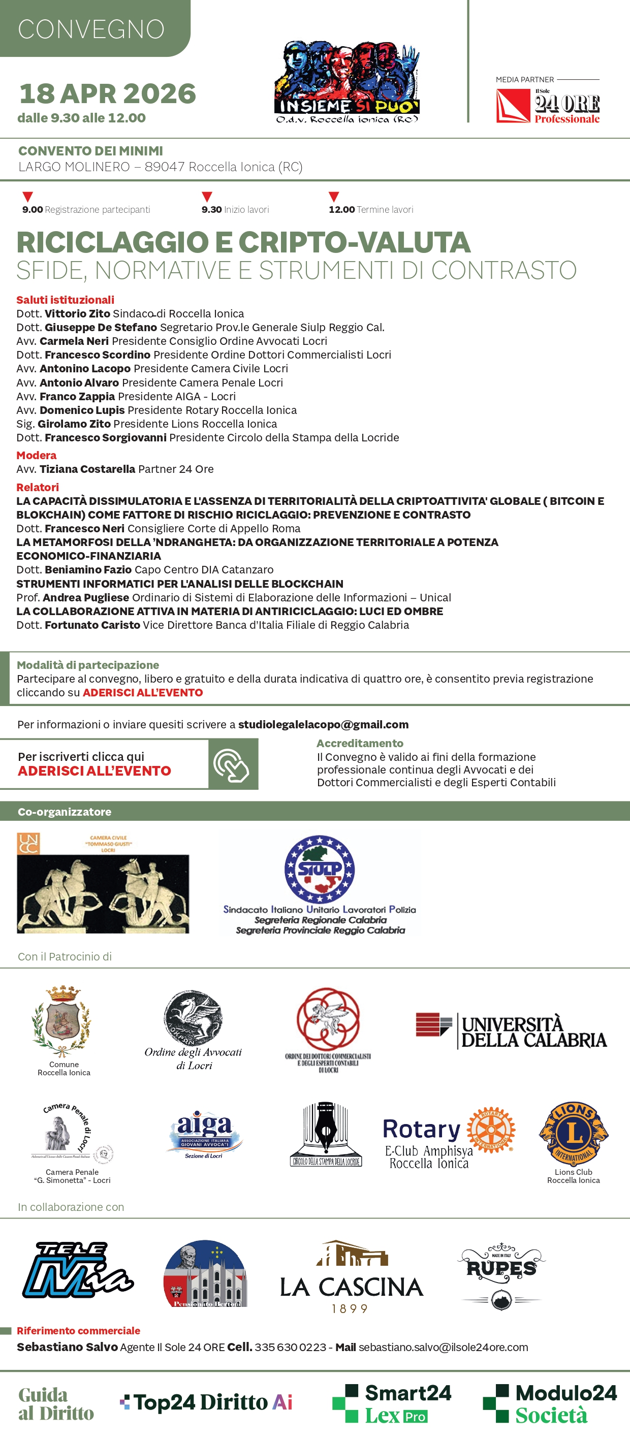 Grazie all’accordo tra il Consiglio Nazionale ed Il Sole 24 Ore sarà possibile seguire gratuitamente la diretta streaming sul sito https://telefisco.ilsole24ore.com/. Coloro che si registreranno all’evento, riceveranno la dispensa digitale con la raccolta di tutti i materiali dell’evento e la possibilità di accedere per due mesi (dal 6 febbraio al 6 aprile 2026) all’Archivio Fisco de L’Esperto Risponde, il servizio di risposta ai quesiti del Sole 24 ORE."
