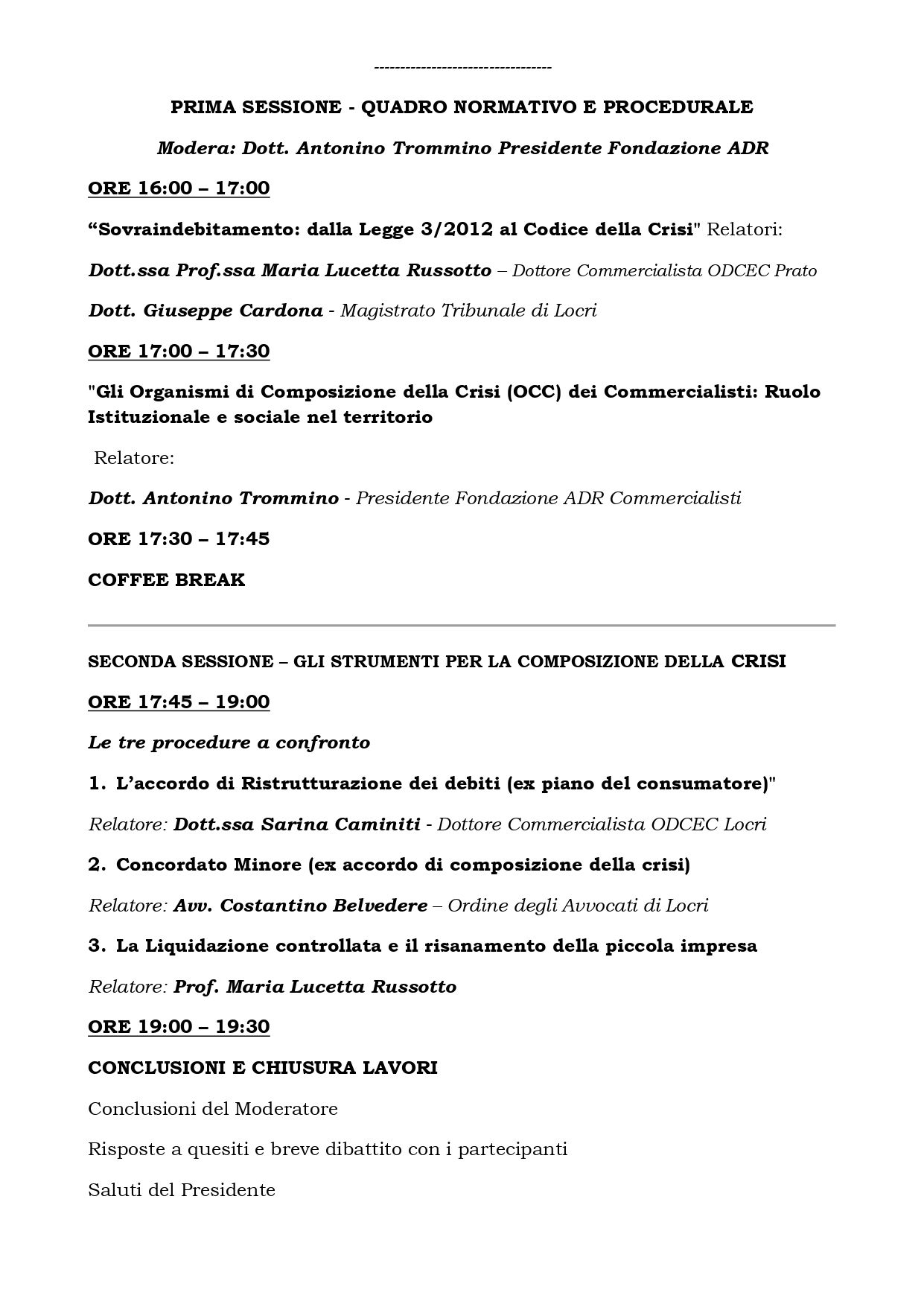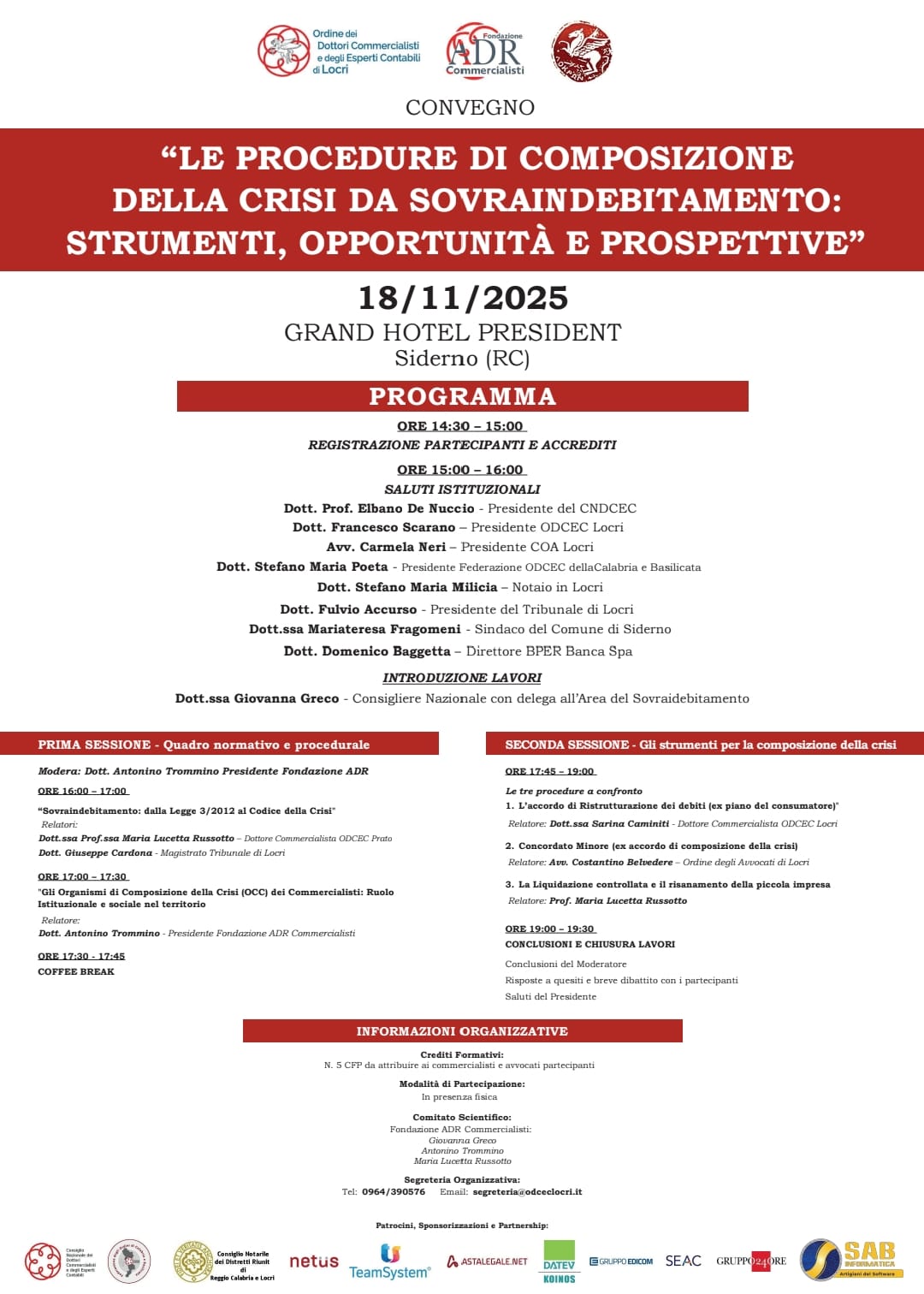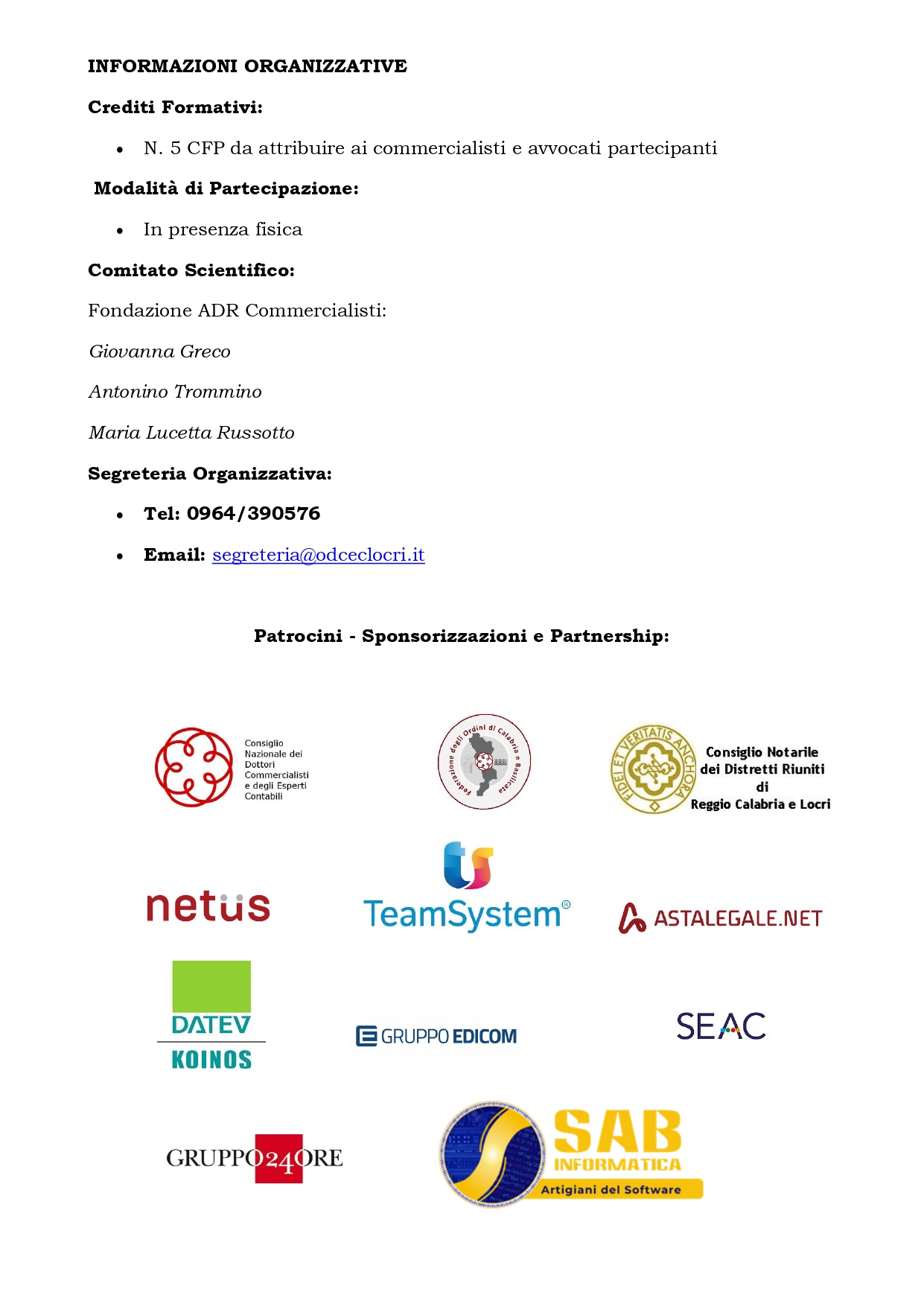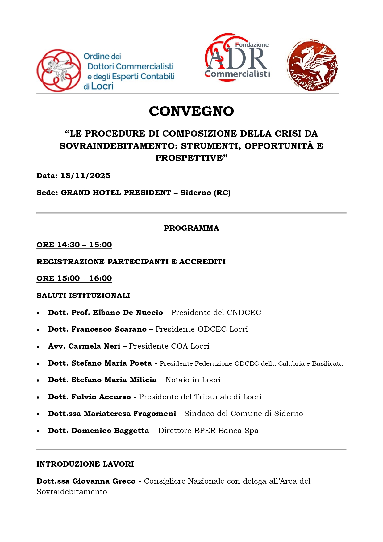 • € 40,00 per gli Iscritti all’Ordine dei Dottori Commercialisti ed Esperti Contabili di Locri;